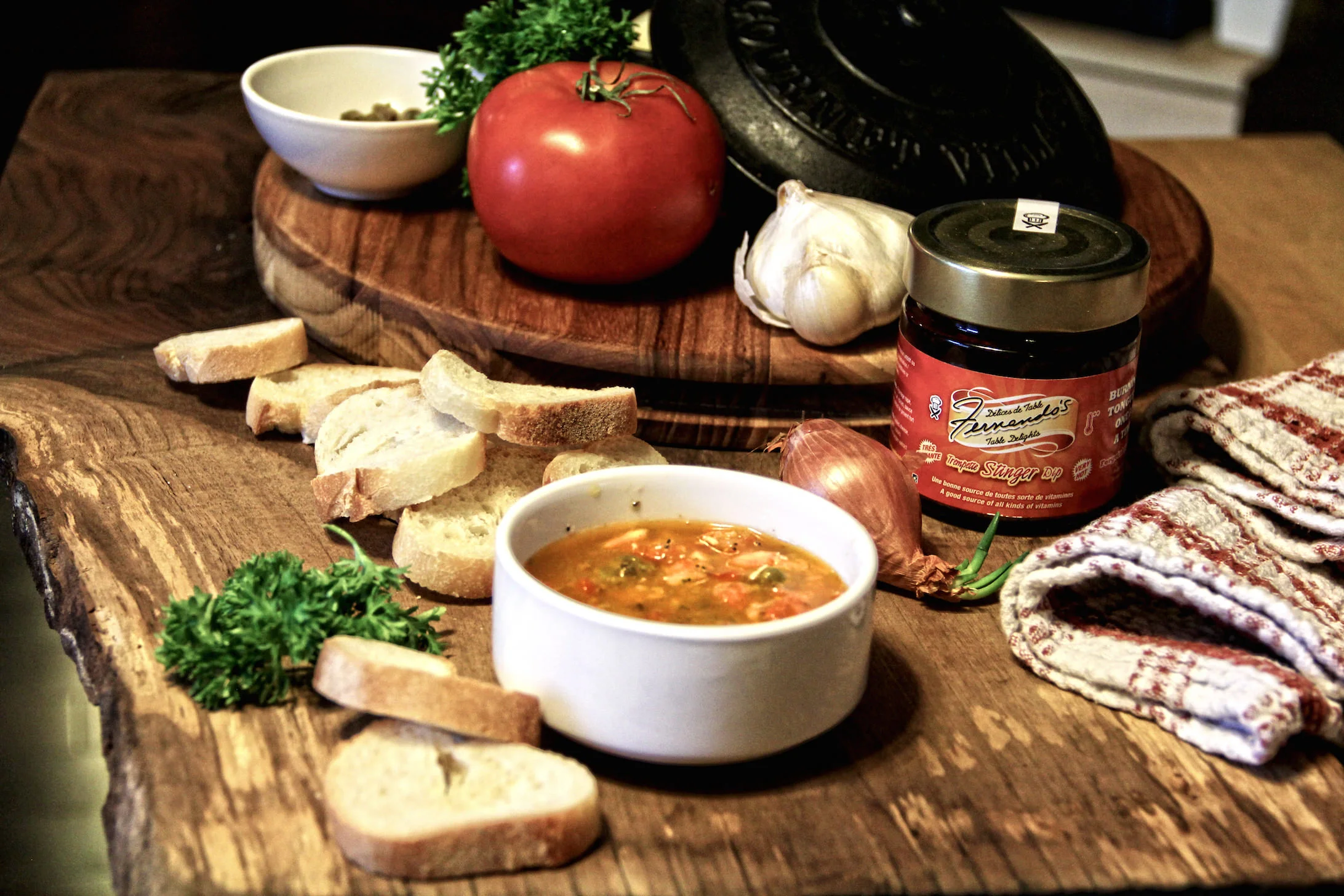 2 parts bruschetta, 1 part Fernando’s Stinger Dip. Mix and Enjoy!