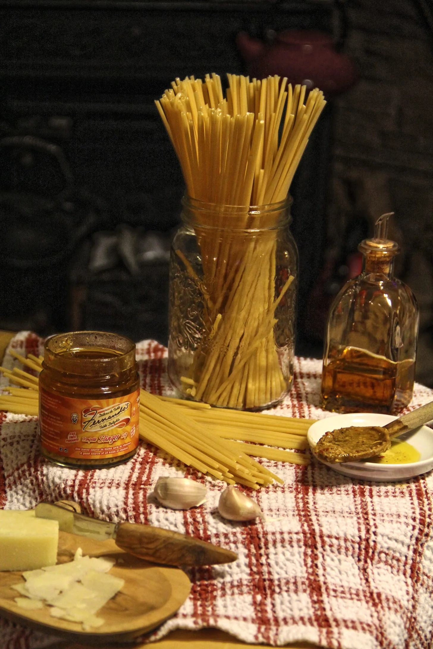 - 1 pk de votre spaghetti ou linguine préférée cuit