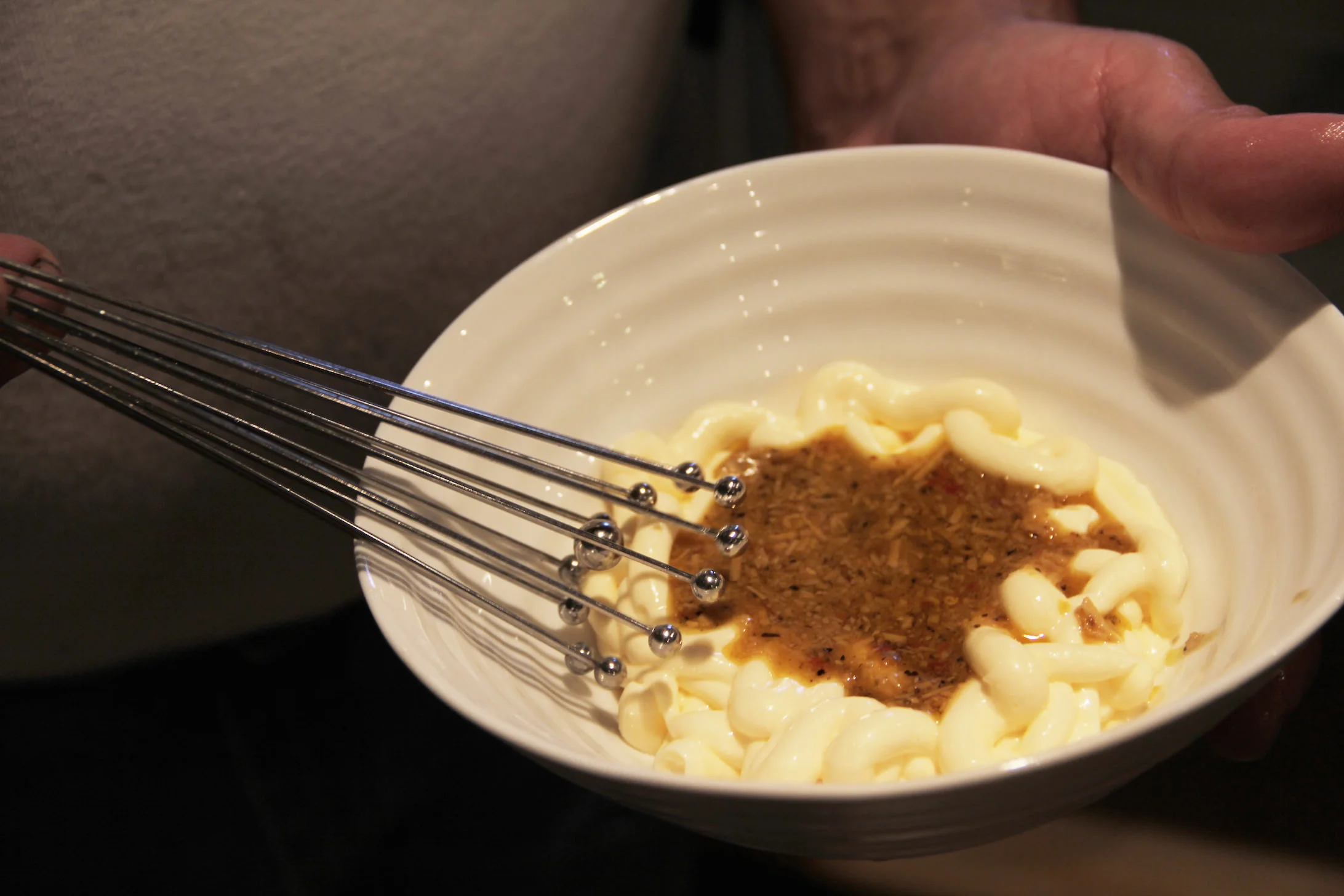 2 parties mayonnaise, 1 partie trempette “Stinger” de Fernando. Mélanger et déguster!